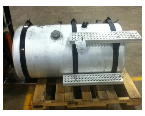 RH aluminum 105 gallon fuel tank with steps, straps and brackets off '09 prostar. Measures 26" dia x 50" length with rear fill neck, 19" from rear of tank to center of neck