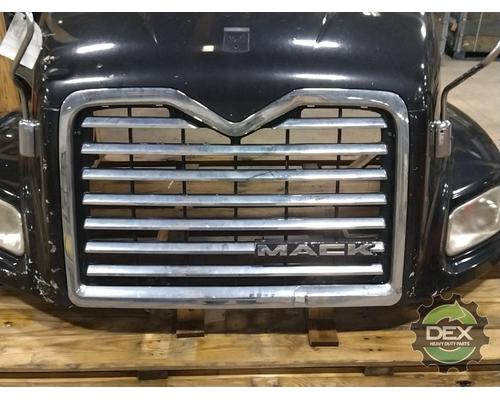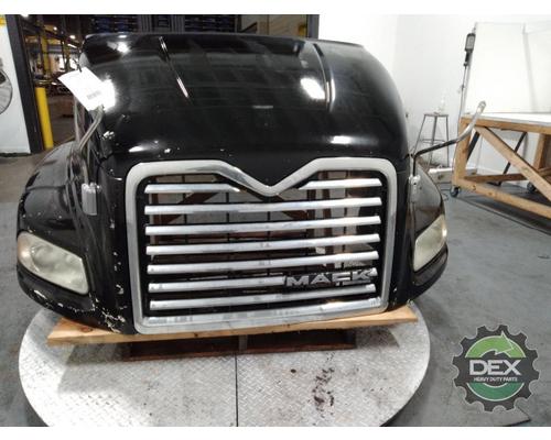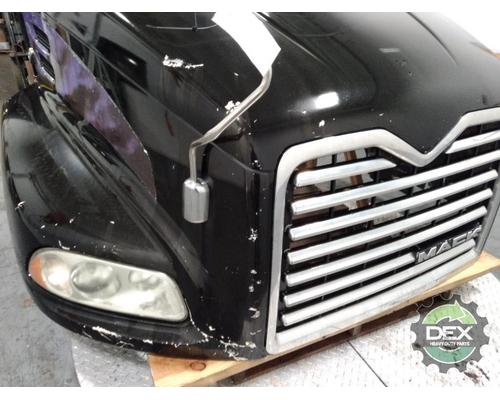 '13 Mack CXU axle back complete groomed hood assembly, with headlights, grille, vents, spot mirrors, chrome latches etc... Has cracks around the RH headlight, usable hood
