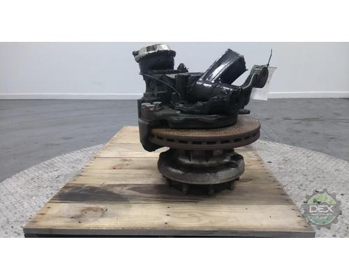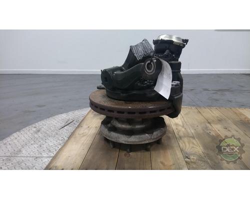 Volvo steer axle RH hub cutoff, hub 21538410, off beam 22592583, knuckle 22096788, caliper 22177483, setup for hub piloted aluminum wheel, ABS disc brakes