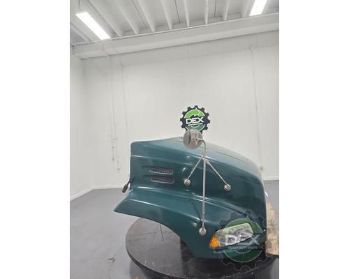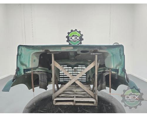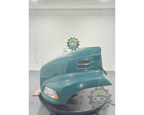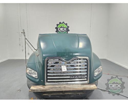 '13 Mack CXU axle back complete groomed hood assembly, with headlights, latches, vents, spot mirror, grille, etc... Grille is cracked at bottom, rock chips in paint, otherwise clean hood, painted Green N2940