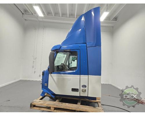 '15 complete Volvo VN Daycab, wired for D13 with Volvo Ishift trans, manual LH and power RH windows, power and heated mirrors, air driver and fixed passenger seats, roof and side fairings, good glass, clean solid cab, Painted Island Blue P3305 and Glacier white P3029