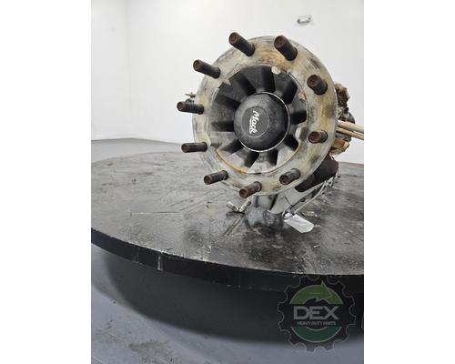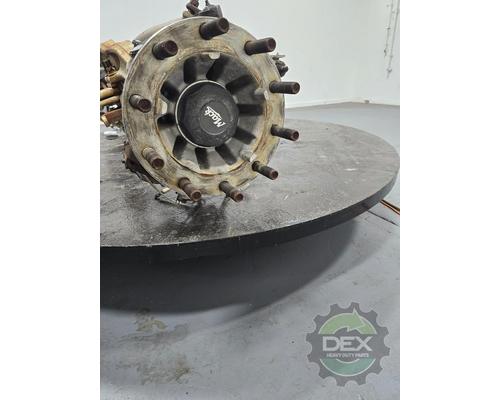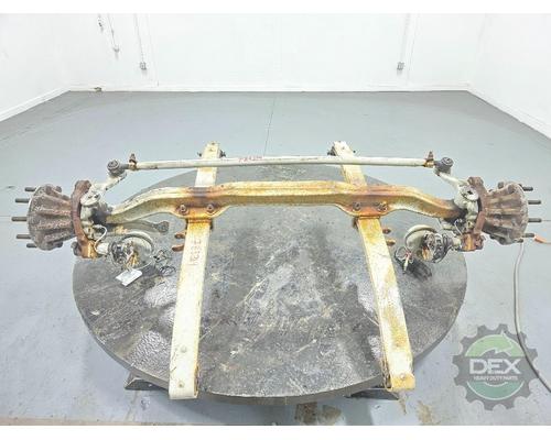 Mack FXL12 steer axle assembly, with kuckles 21607042 and 21607037, hubs 21024247, springs 20548410, setup for hub piloted aluminum wheels, ABS drum brakes, leaf suspension rated at 12.5k