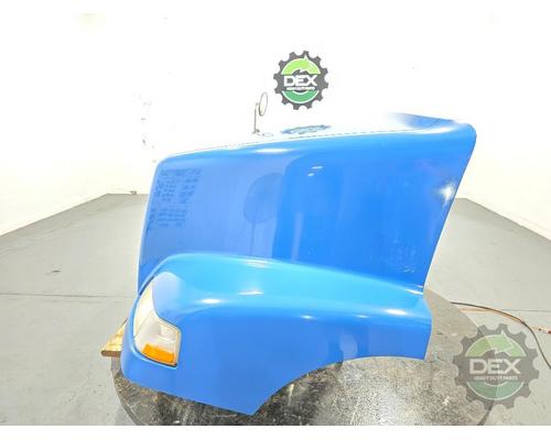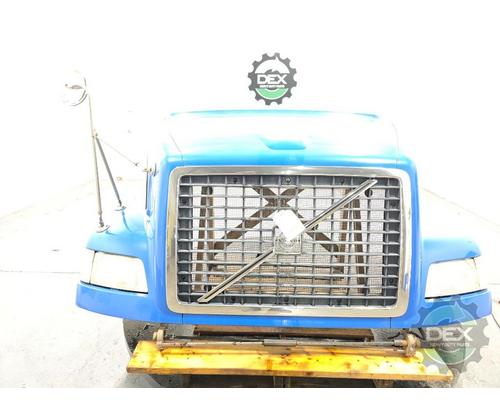 '13 Volvo VNM groomed hood, with headlights, grille, turn signals, spot mirror, vent, etc... good solid hood, 20769889, painted Island blue P3305