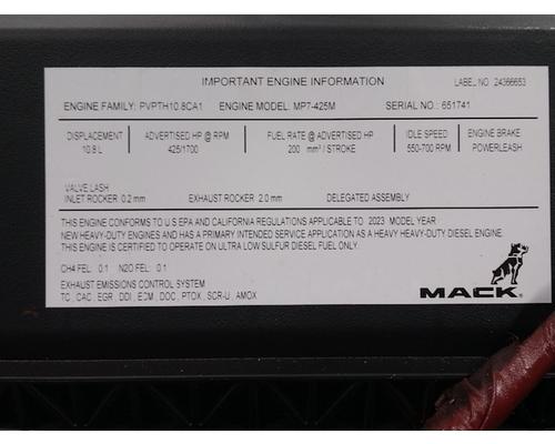 New never installed MACK US21-OBD23 MP7 engine, rated at 425M hp, family id PVPTH10.8CA1, serial 651741, no core charge !(CORE GROUP: 85037210), 24418568