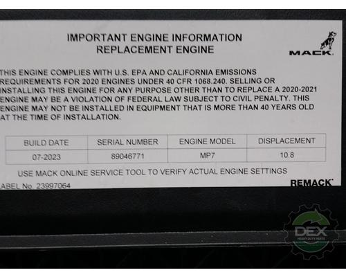 MACK REMAN MP7 BASE ENGINE W/ BRAKE-CEBV, DISPLACEMENT 10.8 (CORE GROUP: 85028816), 85022816 ***NEVER INSTALLED***