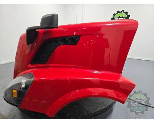 '14 Volvo VNL GEN 2 complete groomed hood, small wheel opening, headlights, grille, vents, spot mirrors, etc..., has small rub undergrille from bumper, clear coat peal in spot on top, otherwise clean solid hood! Painted Premium Red Fire P9084