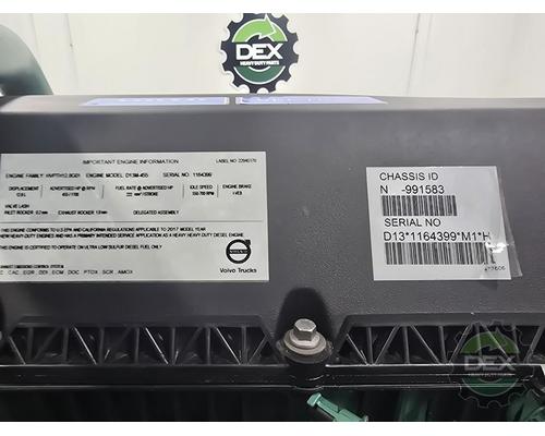'17 Volvo D13M, US17, complete engine, serial 1164399 rated at 455 hp, (Running at time of dismantle, 4/6/26) was paired with Ishift trans, out of '17 VN with less than 2k miles, No core charge ! Core p/n 85027393, Comes with Dex's 30 day recycled parts warranty!