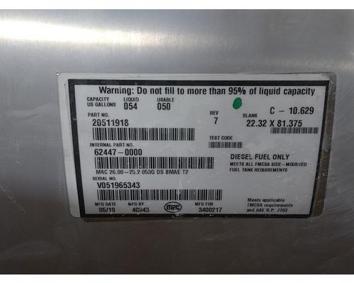 MACK RH FUEL TANK 50 GAL, 26 DIA, ALUM 20511918