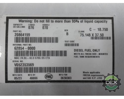 MACK FUEL TANK, 70 GAL W/SUMP, ALUM SATIN APPEARANCE