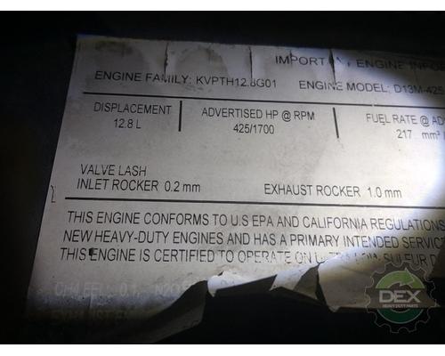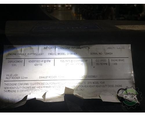 Complete 20' D13M engine 12.8L, US19 emissions, engine brakes, 425HP, S/N 1284004, 769,351 miles, engine is a runner